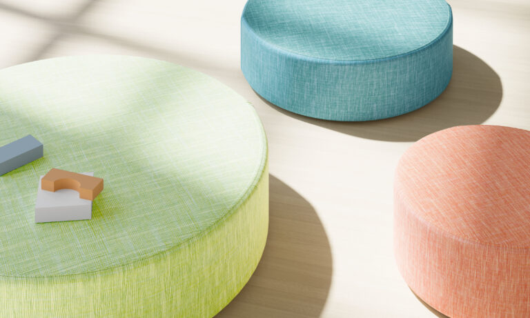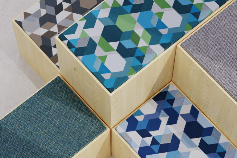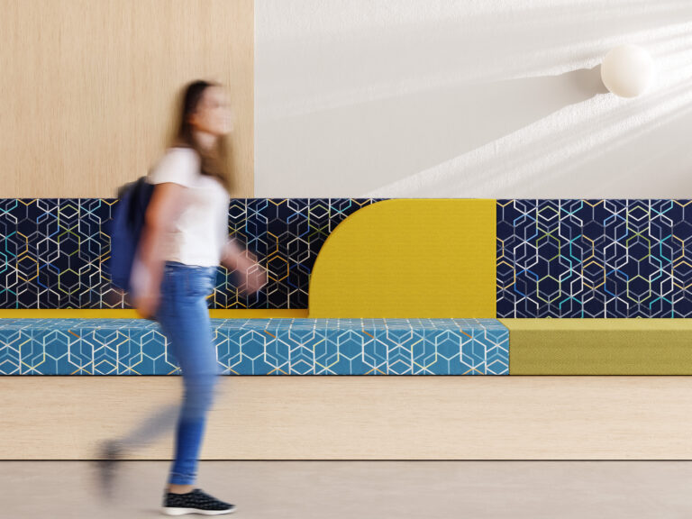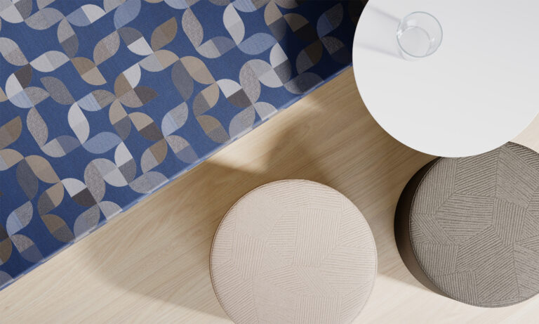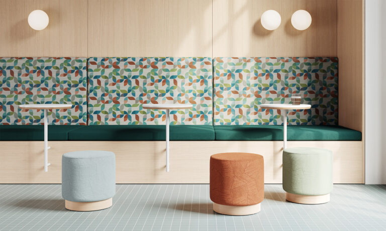 Three new patterns—Mosaic, Sparkle and Waves—each explore movement in unique and playful ways. Mosaic is a coated textile with a large-scale geometric pattern. Sparkle and Waves are digitally printed and available as wallcoverings, multi-use panels and upholstery fabrics, customizable through Designtex Digital Studio.