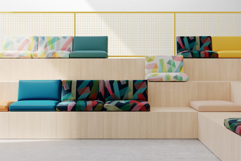 Convene is a multi-color, geometric pattern that brings layers of interest with its complex weaves. The pattern’s subtle pinstripe and mixing of yarns creates a depth of color and dimension that will work with agility across a variety of both indoor and outdoor public spaces – the color palettes range from subtle and neutral to vibrant and bold.