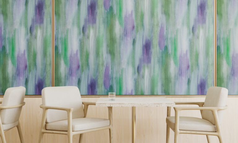Ribbon is a multi-color, large-scale linear pattern with moments of overlap where color and transparency meet. The movement of the pattern mimics the fluidity of ribbons in motion, creating an immersive and dynamic experience in any environment. There is a subtle gridded texture, or emboss, giving this coated textile a hint of tactility, making it ready to tackle all high-performance needs.