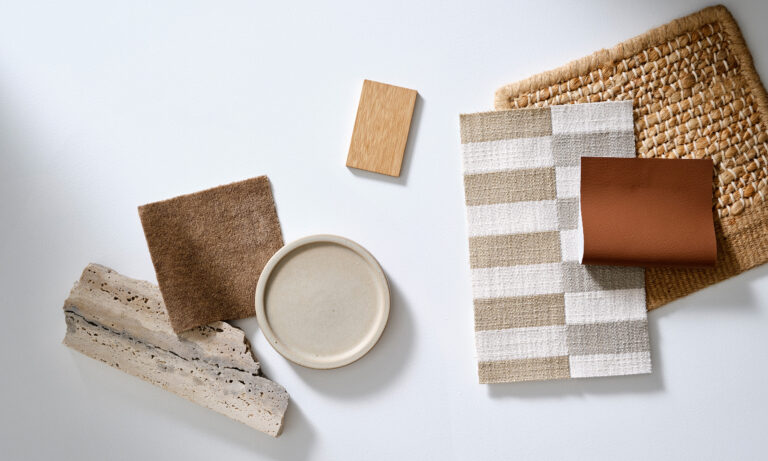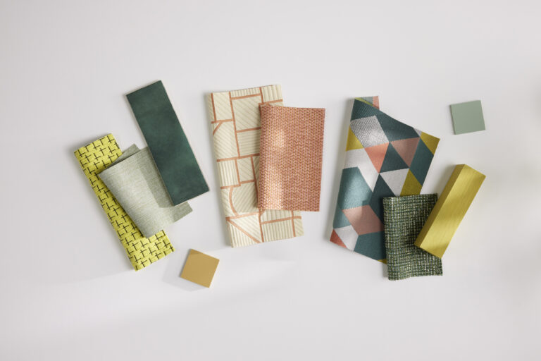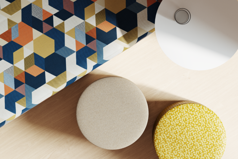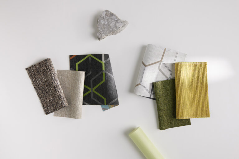 Explore seven new designs in our new collection, Flora + Form—woven, coated, wallcovering and a customizable Digital Studio pattern, all inspired by nature’s rhythm and tactility. At a distance, the collection reads as an abstracted landscape with canopies, riverbeds, and lichened stone rendered in modernist colorways. Mossy greens, clay reds, and deep-water blues anchor the palette, giving each design a grounded, outdoor calm.