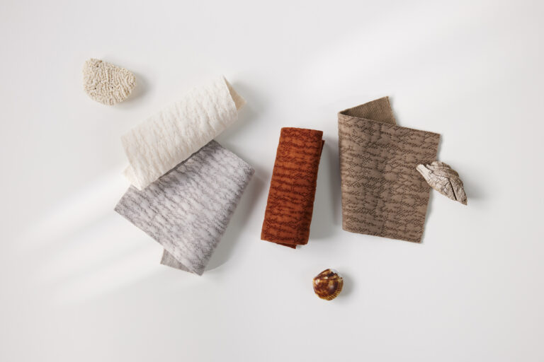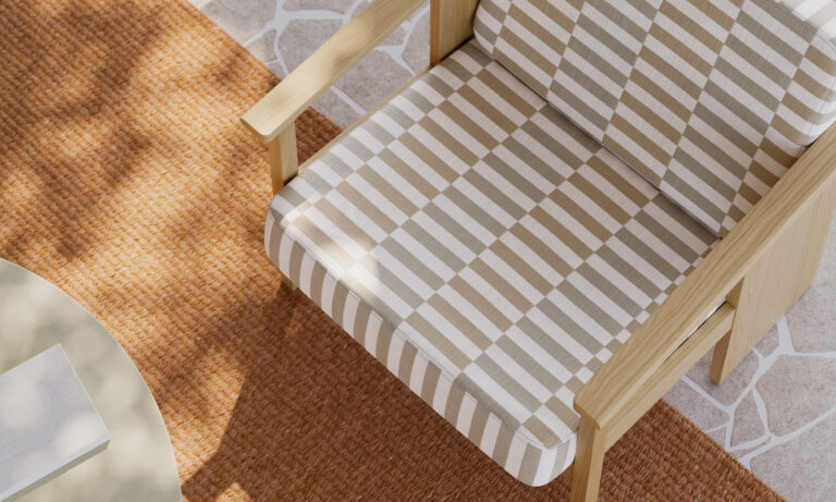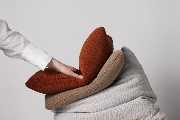 Join explores the quiet tension of offset stripes, structured yet softened, always in motion. Mending reflects the poetry of visible repair, its patch motif echoing hand-stitched care. Together, they celebrate material honesty, subtle irregularities, and the quiet power of simplicity; speaking a human language of time, tactility, and intention.